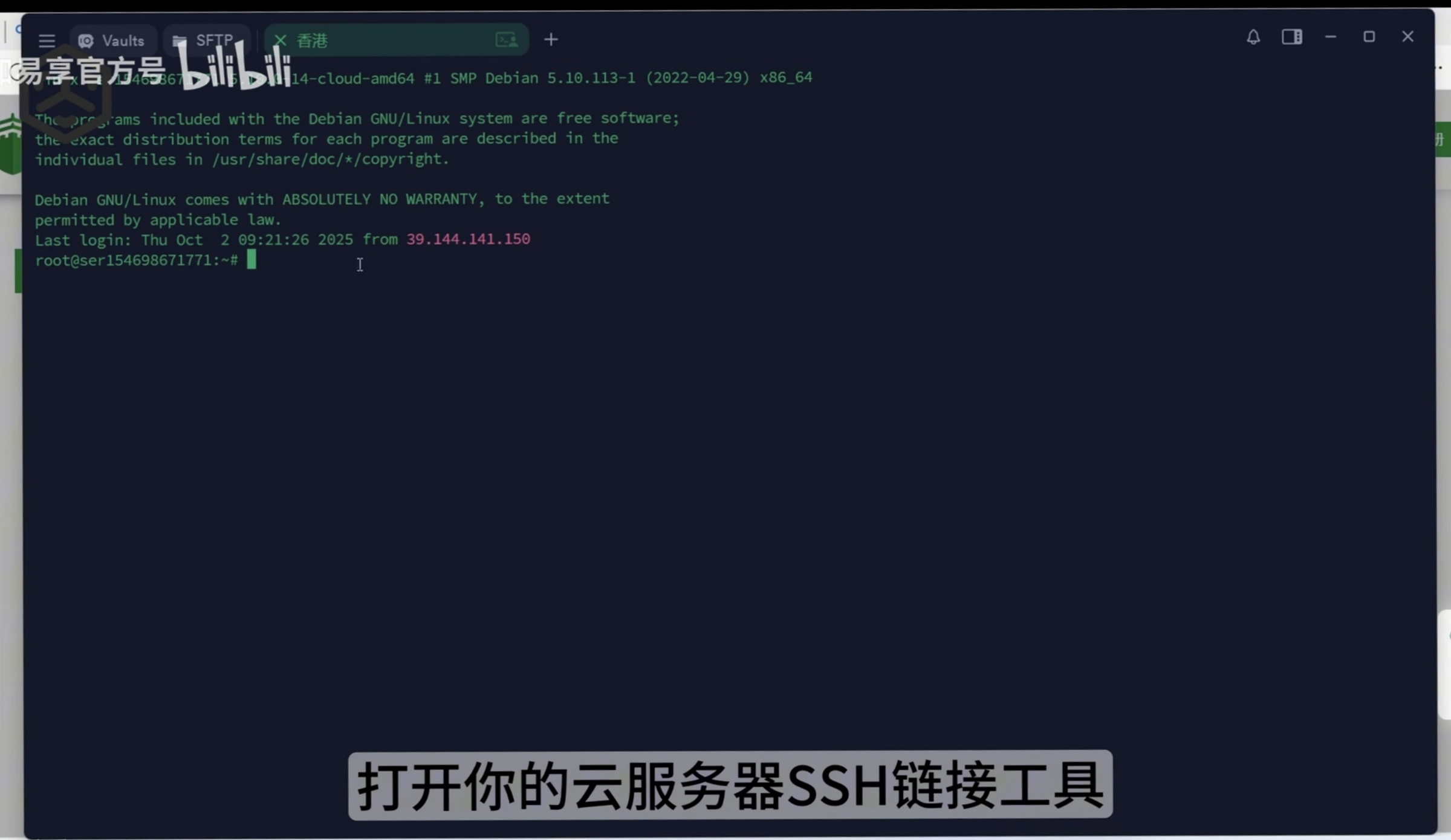 将复制的安装命令粘贴到你的云服务器终端,可以直接使用服务商控制台的VNC桌面,或者准备SSH连接工具,推荐后者,以保证良好的文字适配
