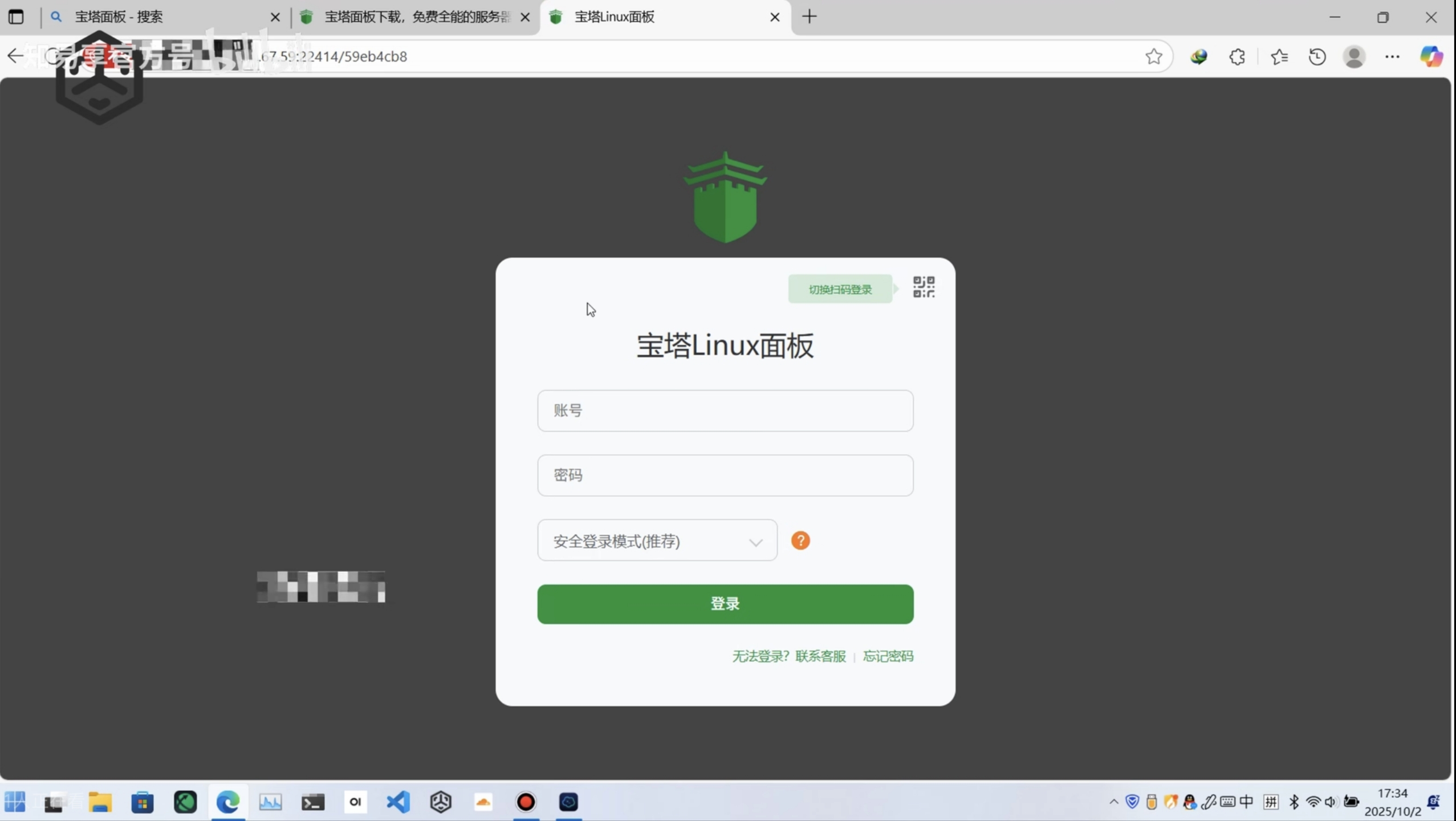 将外网访问地址复制到浏览器并打开,即可看见面板登录页面