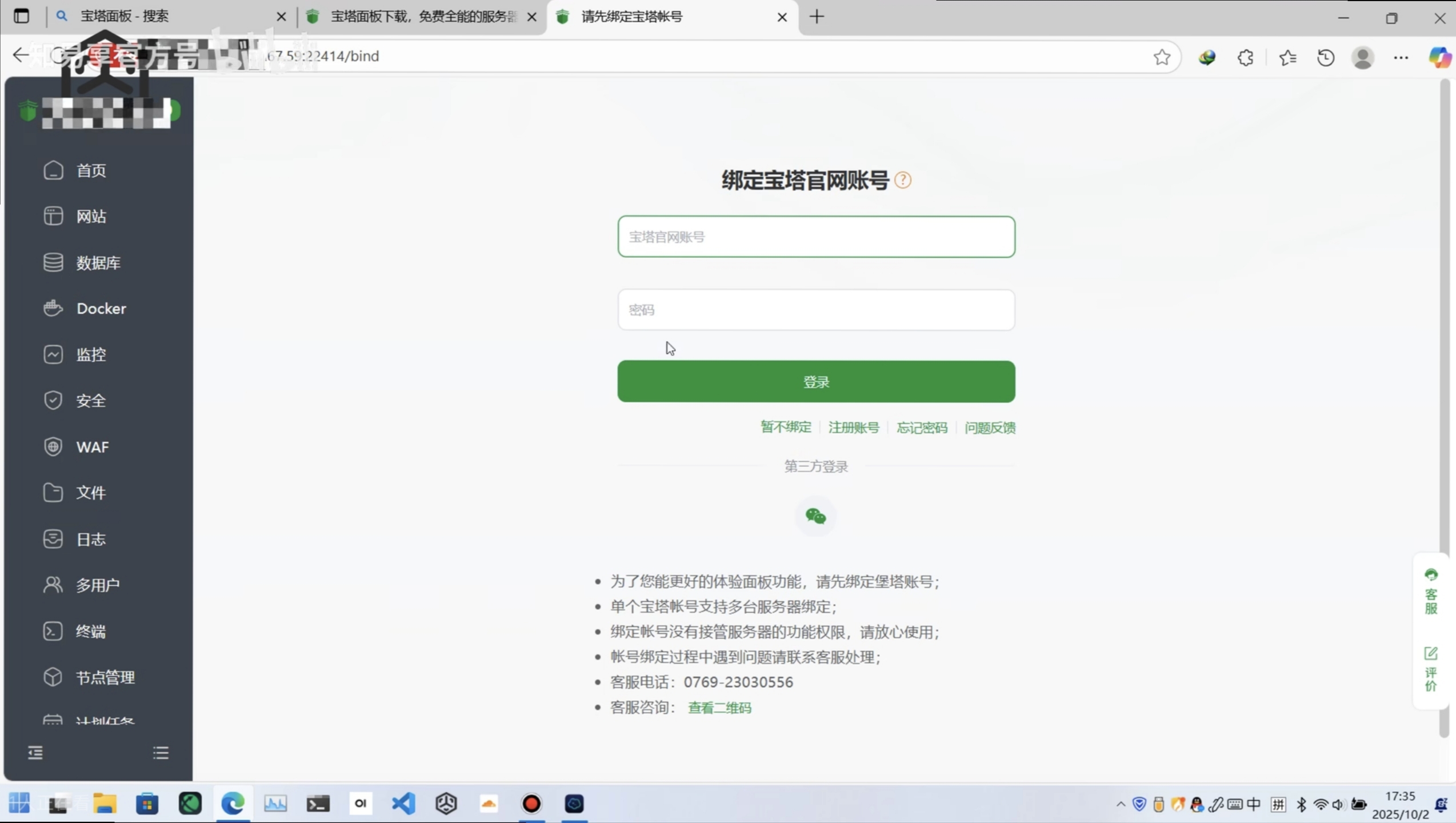 4、绑定宝塔账号
