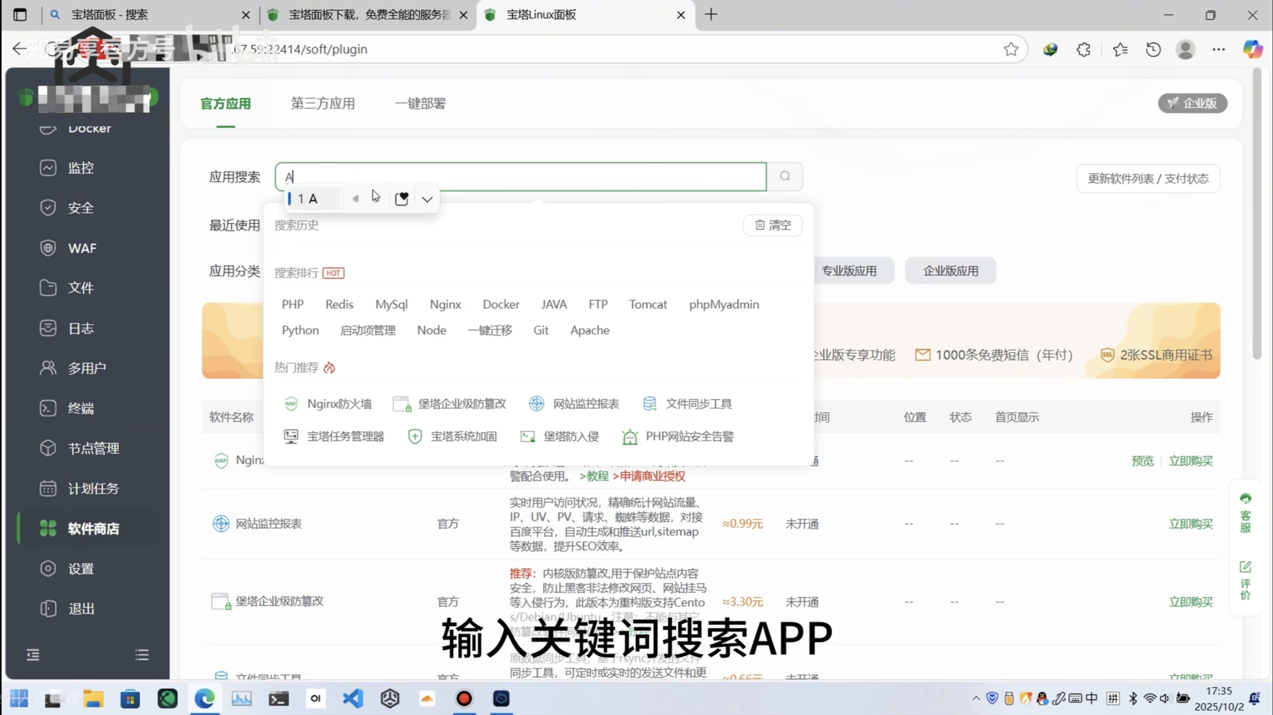 在浏览器搜索「宝塔面板」,点击进入官网